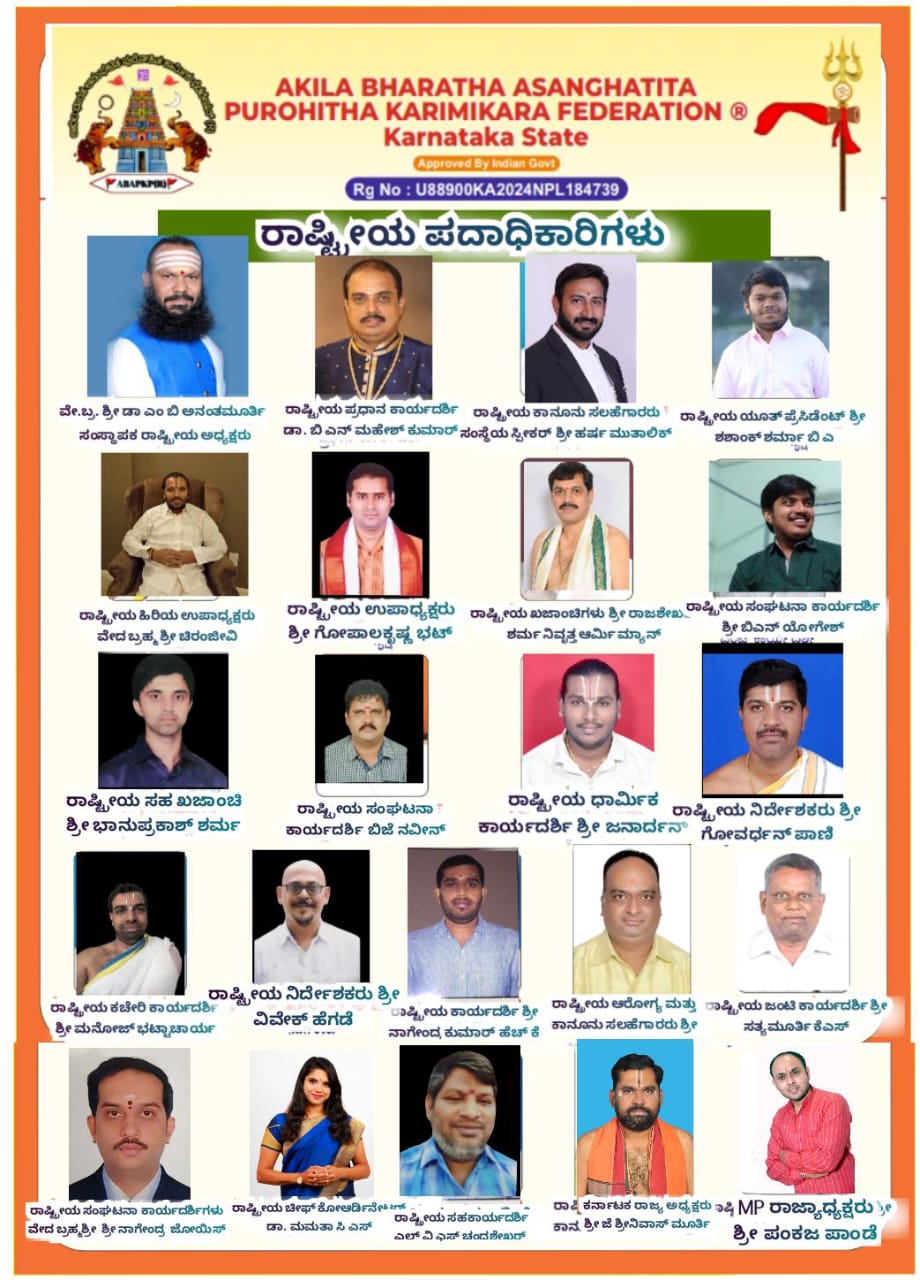 ಅಖಿಲ ಭಾರತ ಅಸಂಘಟಿತ ಪುರೋಹಿತ ಕಾರ್ಮಿಕರ ಫೆಡರೇಶನ್( R) ರಾಷ್ಟ್ರೀಯ ಸಂಸ್ಥೆ ರಾಷ್ಟ್ರೀಯ ಪದಾಧಿಕಾರಿಗಳು.